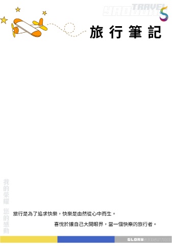 旅 ⾏ 筆 記 旅⾏是為了追求快樂,快樂是由然從⼼中⽽⽣。 喜悅於讓⾃⼰⼤開眼界,當⼀個快樂的旅⾏者。