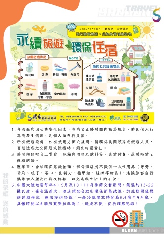 4 . 歷 年 來 , 全 球 環 保 意 識 抬 頭 , 部 份 酒 店 將 不 提 供 一 次 性 用 品 ( 牙 膏 、