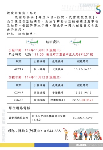 感 謝 您 參 與 【 尋 道 八 日 ~ 西 安 、 武 當 道 教 聖 旅 】。