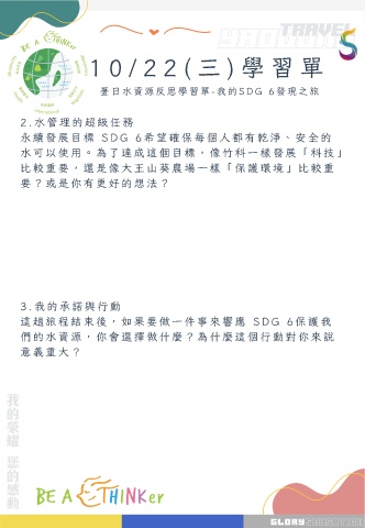臺 日 水 資 源 反 思 學 習 單 - 我 的 S D G 6 發 現 之 旅