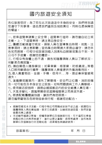 各位旅客您好:為了您在此次旅遊途中本身的安全,我們特別請