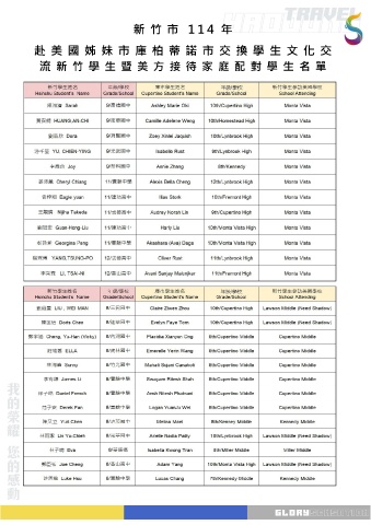流 新 竹 學 生 暨 美 方 接 待 家 庭 配 對 學 生 名 單