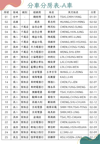序號 區域 級別 經銷商 姓名 英文姓名 分房