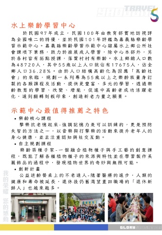 於 各 村 皆 有 拓 點 授 課 , 落 實 村 村 有 樂 齡 。 水 上 鄉 總 人 口 數