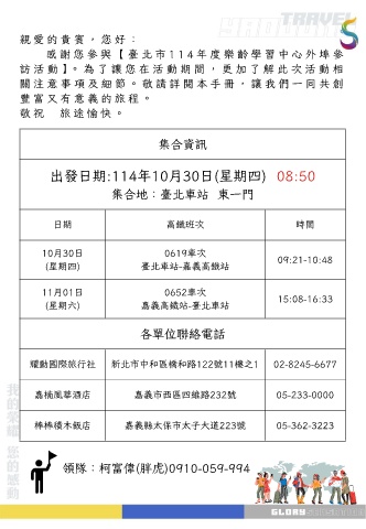 感 謝 您 參 與 【 臺 北 市 1 1 4 年 度 樂 齡 學 習 中 心 外 埠 參