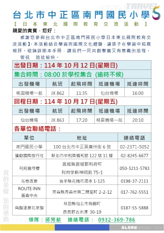 感謝您參與 台北市中正區南門國民小學日本東北國際教育交