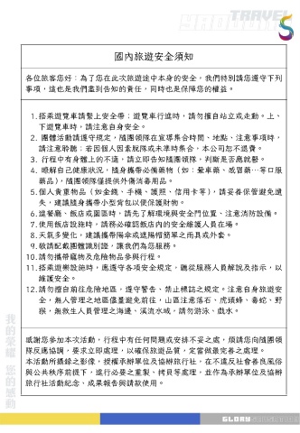 各位旅客您好:為了您在此次旅遊途中本身的安全,我們特別請您遵守下列
