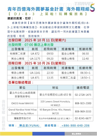 感 謝 您 參 與 【 青 年 百 億 海 外 圓 夢 基 金 計 畫 海 外 翱 翔 組 /DJ-8-
