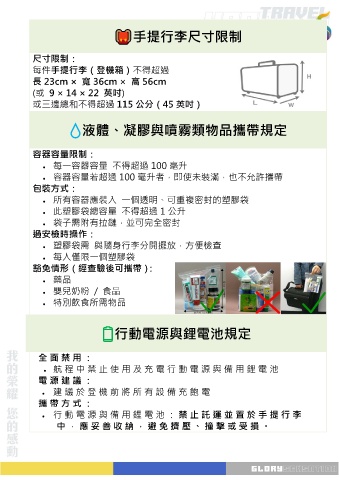 • 行 動 電 源 與 備 用 鋰 電 池 : 禁 止 託 運 並 置 於 手 提 行 李
