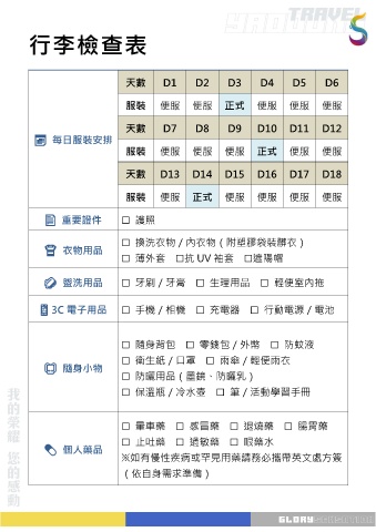 ☐ 隨身背包 ☐ 零錢包/外幣 ☐ 防蚊液