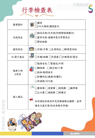 盥洗用品 □牙刷/牙膏 □生理用品 □輕便室內拖