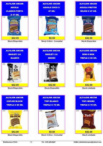 Distribuidora P.R.O. 62 Tel.: 0351-458-8927 E-Mail: distribuidorapro@hotmail.com