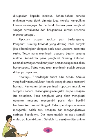 tempat upacara. Dia langsung menuju ke tempat sesajian