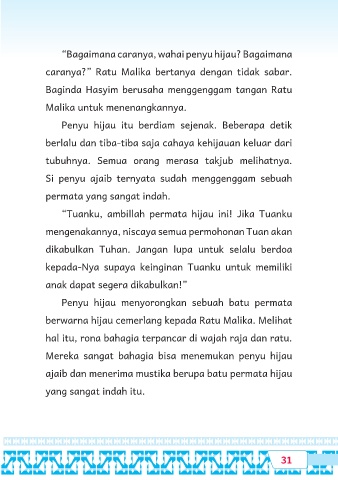 berwarna hijau cemerlang kepada Ratu Malika. Melihat