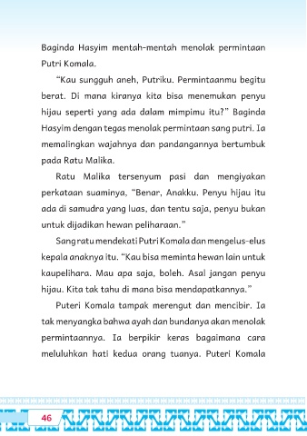 Sang ratu mendekati Putri Komala dan mengelus-elus