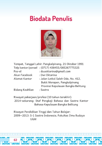 Tempat, Tanggal Lahir: Pangkalpinang, 21 Oktober 1991