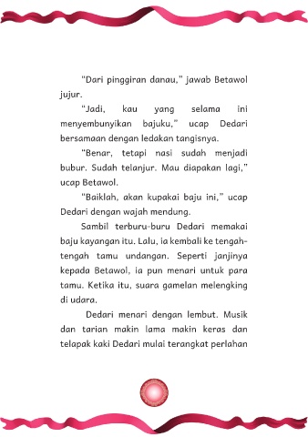 baju kayangan itu. Lalu, ia kembali ke tengah-