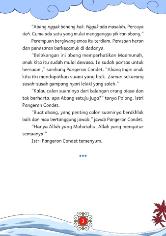baik dan mau bertanggung jawab,” jawab Pangeran Condet.