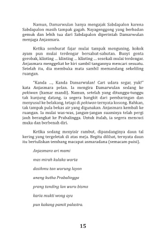 jauh berangkat ke Prabalingga. Untuk itulah, ia segera mencuci