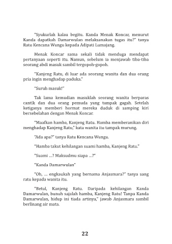 “Maafkan hamba, Kanjeng Ratu. Hamba memberanikan diri