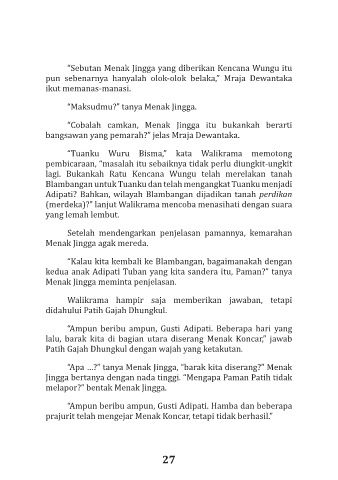 lalu, barak kita di bagian utara diserang Menak Koncar,” jawab