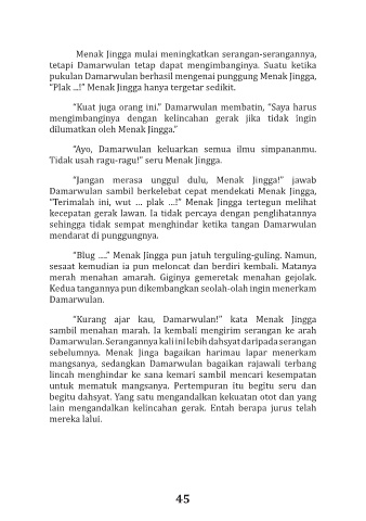 “Kurang ajar kau, Damarwulan!” kata Menak Jingga
