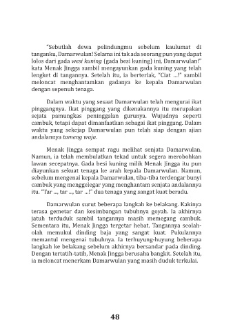 lolos dari gada wesi kuning (gada besi kuning) ini, Damarwulan!”