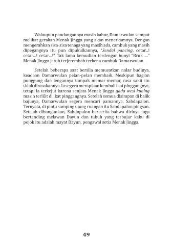 melihat gerakan Menak Jingga yang akan menerkamnya. Dengan