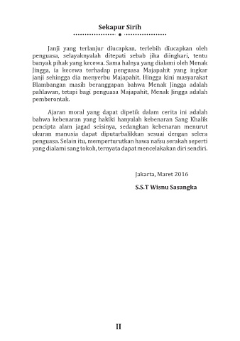 Jingga, ia kecewa terhadap penguasa Majapahit yang ingkar
