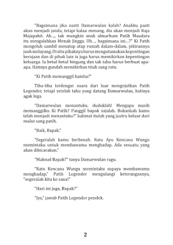 “Maksud Bapak?” tanya Damarwulan ragu.