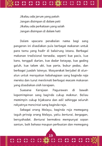 teguh prinsip orang Melayu, yaitu berturai, bergagan,