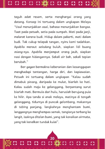 teguh adat resam, serta menghargai orang yang