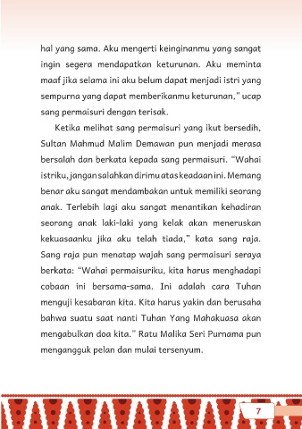 mengabulkan doa kita.” Ratu Malika Seri Purnama pun