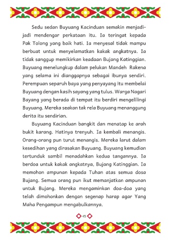 bukit karang. Hatinya trenyuh. Ia kembali menangis.