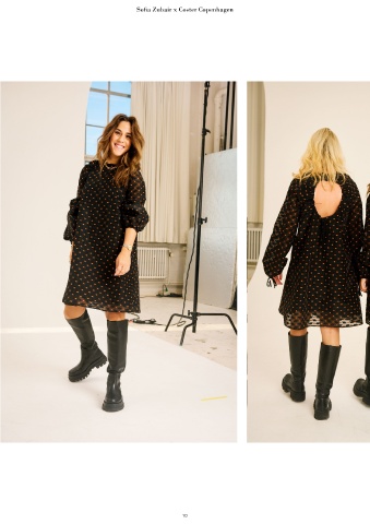 Sofia Zubair x Coster Copenhagen Sofia Zubair x Coster Copenhagen Blouse with frill cuff in 3D print 55% Polyester, 45% Nylon SZ1500 Black Dress with open back detail in 3D fabric 55% Polyester, 45% Nylon October SZ5500 Black 10 11