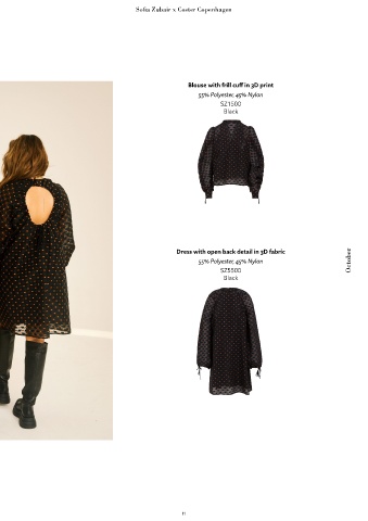 Sofia Zubair x Coster Copenhagen Sofia Zubair x Coster Copenhagen Blouse with frill cuff in 3D print 55% Polyester, 45% Nylon SZ1500 Black Dress with open back detail in 3D fabric 55% Polyester, 45% Nylon October SZ5500 Black 10 11