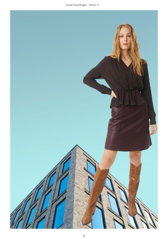 Coster Copenhagen - Winter 22 Coster Copenhagen - Winter 22 Blouse with waist focus 100% Viscose 225-1510 Dark Burgundy A-line leather skirt over knee length 100% Lamb Leather, Lining: 100% Recycled Polyester 225-4506 Black, Bordeaux 34 35