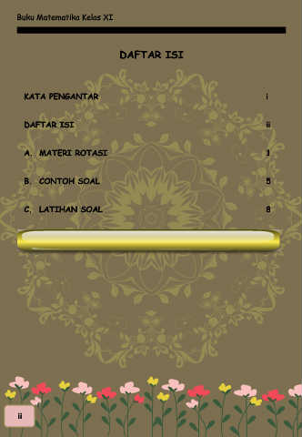 Buku Matematika Kelas XI DAFTAR ISI KATA PENGANTAR i DAFTAR ISI ii A. MATERI ROTASI 1 B. CONTOH SOAL 5 C. LATIHAN SOAL 8 DAFTAR PUSTAKA 9 ii