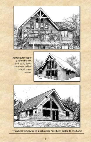 Rectangular upper gable windows and pa o doors have been added to both these homes. Triangular windows and a pa o door have been added to this home 7