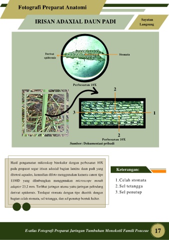 pada preparat segar irisan adaxial bagian lamina daun padi yang Keterangan: