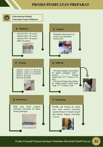 - Akohol : xylol (3:1) 30 menit - Potongan batang dimasukkan
