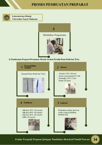 b) Pembuatan Preparat Permanen Metode Section Parafin Daun Padi dan Tebu