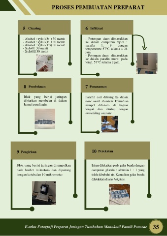 - Akohol : xylol (3:1) 30 menit - Potongan daun dimasukkan