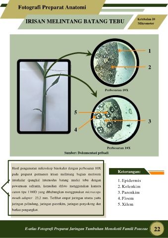 IRISAN MELINTANG BATANG TEBU Ketebalan 10