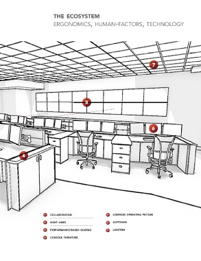 the ecosystem ergonomics, human-factors, technology 7 5 6 4 1 collaboration 5 common operating picture 2 sight lines 6 software 3 performance-based seating 7 lighting 4 console furniture