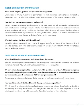 Email access and many Diversified corporate tools and systems will be available to you immediately.