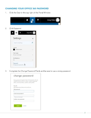 CHANGING YOUR OFFICE 365 PASSWORD 1. Click the Gear in the top right of the Portal Window 2. Click Password 3. Complete the Change Password Fields and be sure to use a strong password 25