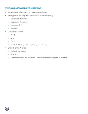 • Strong passwords only: Requires 3 out of 4 of the following: