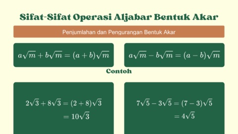 Sifat-Sifat Operasi Aljabar Bentuk Akar Penjumlahan dan Pengurangan Bentuk Akar Contoh