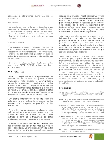 usadas son: ESP32, ESP8266, Arduino uno R3 y acuicultura puede representar una herramienta